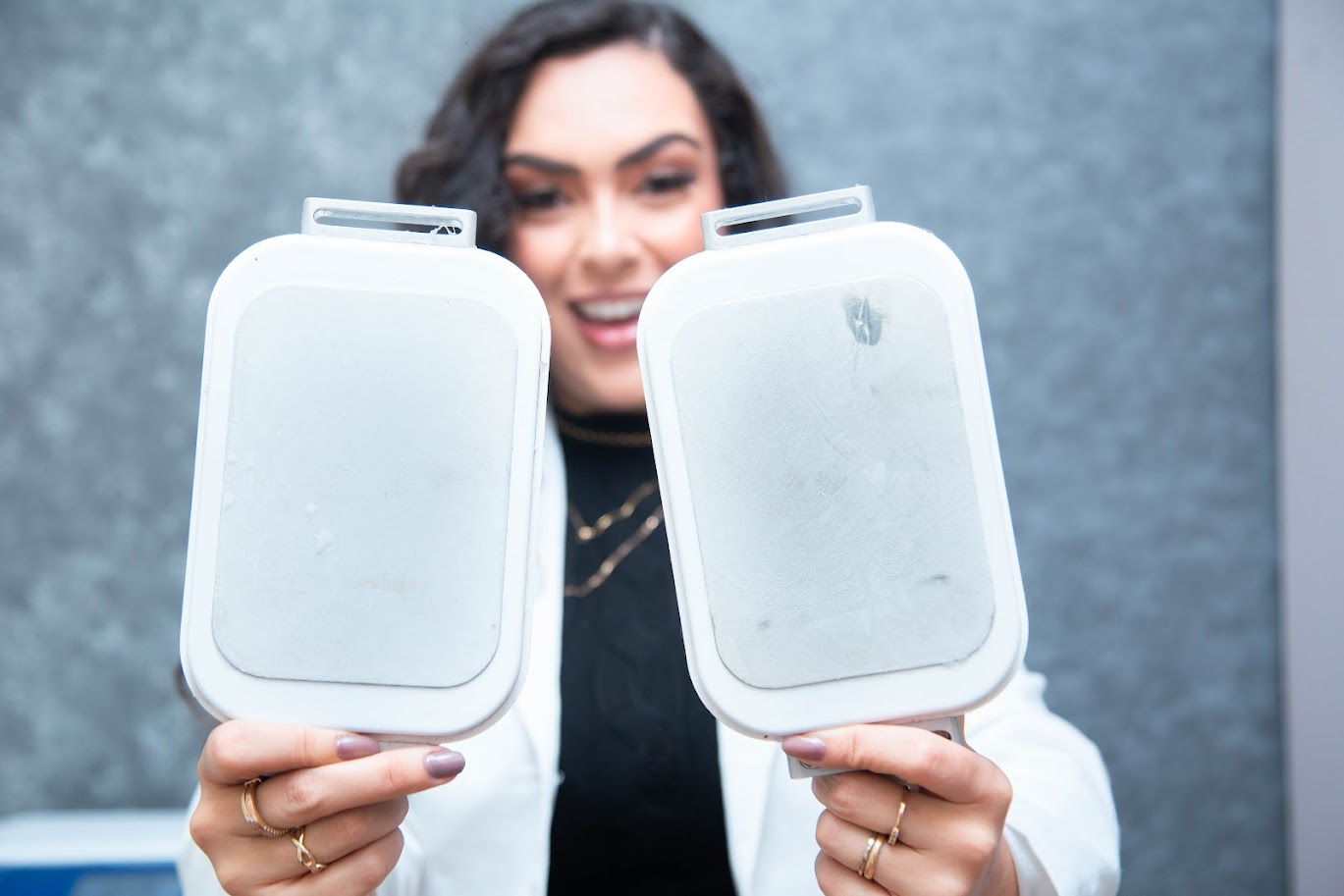 Procedimento de resfriamento controlado da gordura corporal de uma região utilizando um aparelho sobre a pele.